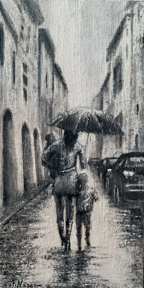 Il talentuoso artista piemontese è senza dubbio uno dei più degni di nota del panorama pittorico emergente contemporaneo; le sue atmosfere metropolitane, i suoi spaccati di vita, non possono non far sentire l’osservatore come parte di un tutto, facendogli ricordare momenti vissuti e solo in apparenza dimenticati. Si forma come autodidatta Fausto Nazer seguendo quell’amore per il disegno grafico che solo in un secondo tempo si estende anche alla pittura, quella più realista, quella in cui l’occhio si sofferma sul conosciuto per poi vagare nel ricordo emotivo. Fin dai primi dipinti, quelli più legati al paesaggio che vive e vede ogni giorno, emerge una spiccata sensibilità attraverso la quale riesce a dar vita e anima a tramonti, nevicate, scorci, che con il suo tocco sembrano muoversi lievemente e dolcemente;